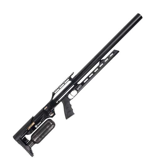Taipan SLASH is a revolutionary semi-automatic PCP air rifle with up to 12-round magazine capacity, fast-acting valve, shrouded barrel and multi-calibre options (.177/.22/.25/.30). Designed for high shot rate and performance.